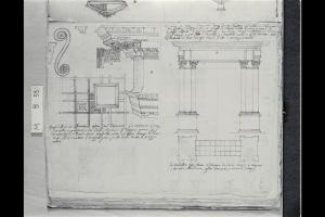 Studio dei dettagli architettonici di una porta e prospetto e pianta di una porta