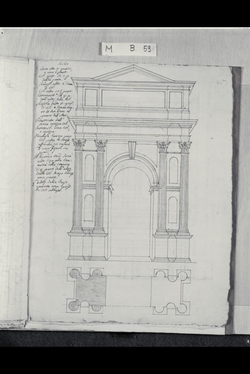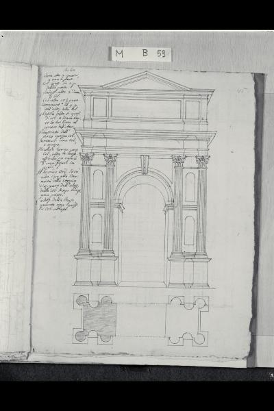 Prospetto e pianta di un arco trionfale