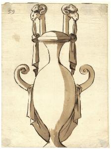 Anfora biansata sormontata da due teste d'ariete