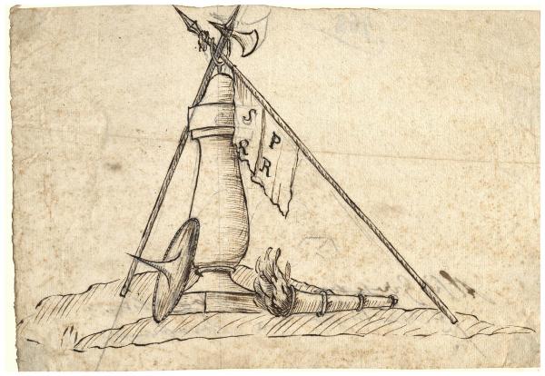 Schizzo di ornato con elementi antichi e la sigla SPQR
