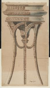 - NOTIZIE STORICO CRITICHE Questo foglio è uno dei migliori dell'intero Fondo ed è opera certa di Giuseppe Levati. Nulla sappiamo sull'uso che ne fu fatto. Mezzanzanica (1878, p. 52) accenna ad un tripode eseguito per la corte di Pietroburgo, di cui non si hanno ulteriori notizie. Egli trae questa notizia da un passo del "Giornale Enciclopedico di Milano" (1783, Tomo IV, p. 172) dove si legge: "Il Sig Giuseppe Maggiolini di Parabiago ultimamente ha fatto osservare alle LL.AA.RR. un tripode tutto ad ornati, e non vi si ammirano mai abbastanza le finitezza e la delicatezza del lavoro, il tripode si suppone per la Corte di Pietroburgo, la quale ha già aggradito altr'opera dello stesso". Si veda il foglio B 646.\n[Beretti - Gonzalez Palacios 2014]