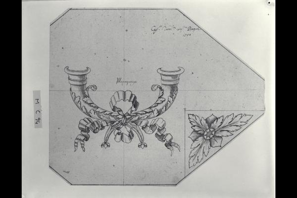 Due cornucopie, fiore in riserva triangolare