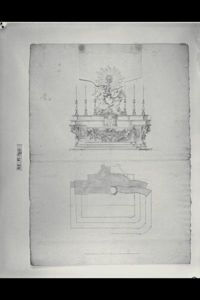 Pianta e prospetto di un altare con alternativa per l'ostensorio