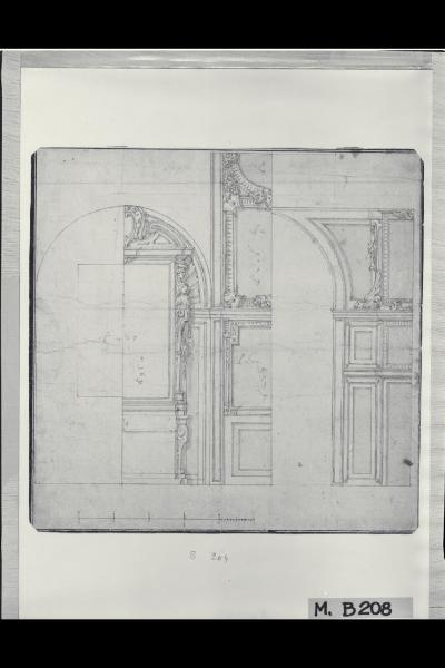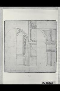 Disegno quotato di un altare con ancona e pareti limitrofe