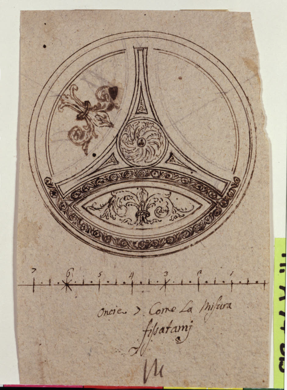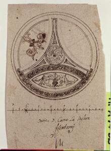 - NOTIZIE STORICO CRITICHE Il disegno può essere messo in rapporto con il tavolino nella Collezione Terruzzi (Beretti 2005, p. 48 e sgg.). Stilisticamente il foglio è stato accostato ad alcuni disegni del Levati e a un nucleo attribuito ad Agostino Gerli (Beretti, González-Palacios 2014).