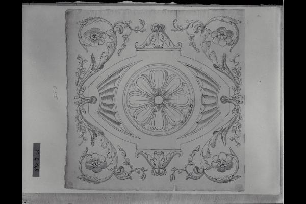Ornato a girali con rosone ed elementi fitomorfici