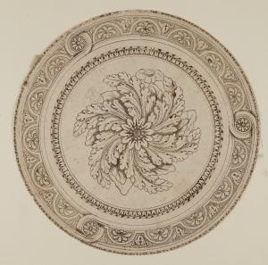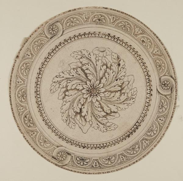 - NOTIZIE STORICO CRITICHE Attorno ad un rosone di foglie d'acanto, varie incorniciature. Di bella qualità e di epoca piuttosto alta, prossimo al fare di Giuseppe Levati.\n[Beretti - Gonzalez Palacios 2014]
