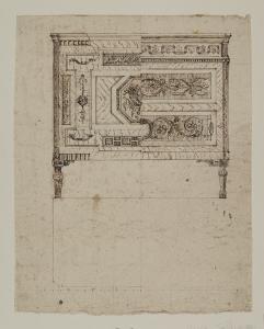 - NOTIZIE STORICO CRITICHE Il fronte del comò presenta due soluzioni, quella a sinistra con un grande cassetto centrale e un cammeo ottagonale, e quella a destra con due tiretti; in basso al foglio, dimensioni e dima del piano probabilmente in marmo. Il disegno eseguito di getto e con sicurezza, venne attribuito da Morazzoni ad Agostino Gerli. Attribuzione sensata, anche se appare ozioso dividere l'opera di Agostino da quella del gratello Giuseppe, assieme al quale spesso lavorava (si veda C 40). Per altri disegni in rapporto ai Gerli si veda quanto scritto al foglio B 194.\n[Beretti - Gonzalez Palacios 2014]