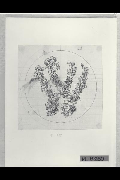 Lettera W formata da un ramo di vite e da fiori