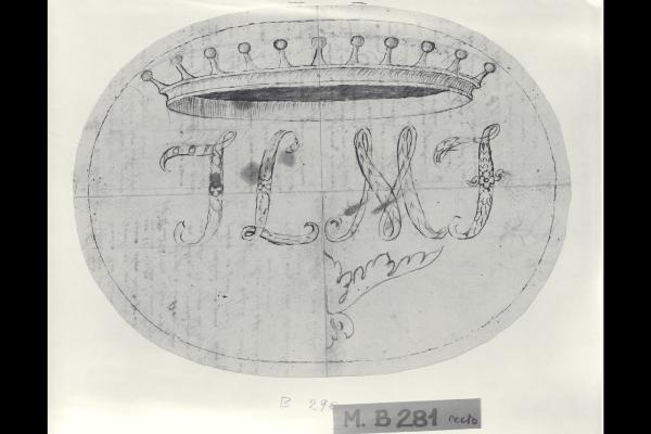 Monogramma TLMF sormontato da una corona nobiliare in un ovale