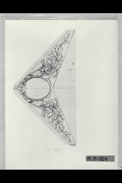 Incorniciatura ovale con foglie d'acanto e rami d'ulivo
