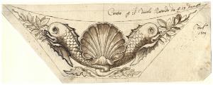 Conchiglia attorniata da due delfini