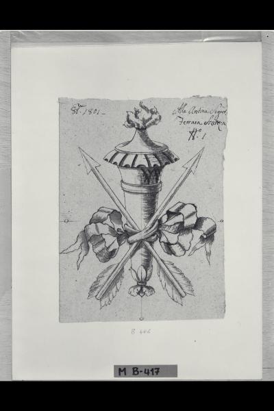 Una fiaccola e due frecce legate da una galla