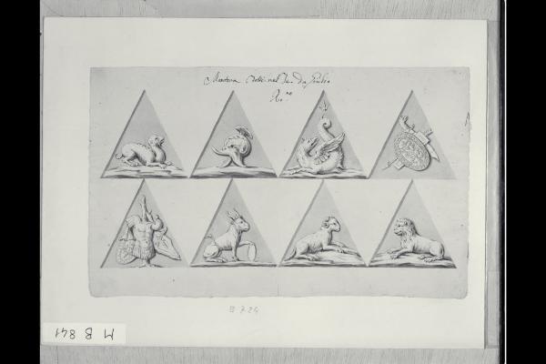 Scudi con animali fantastici e trofei (emblemi da Palazzo Te)