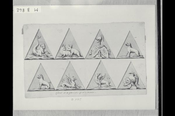 Scudi con animali fantastici e trofei (emblemi da Palazzo Te)