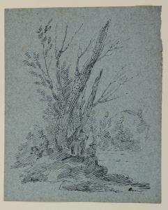 Paesaggio con alberi, figurette e una casa. Paesaggio con alberi, figurette e una casa