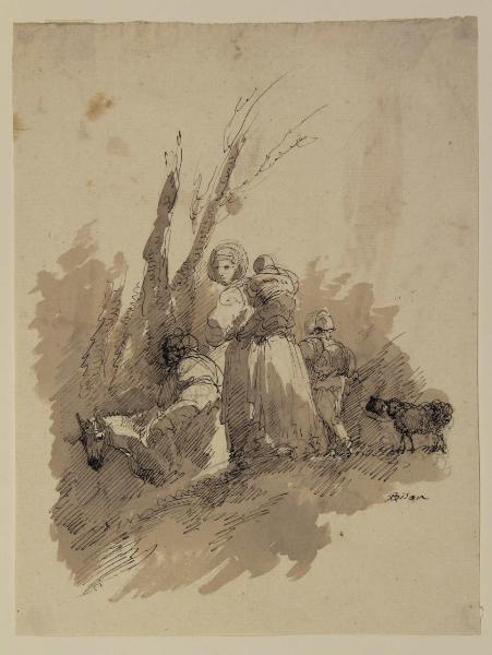 Gruppo di contadini con un cavallo e una pecora. Gruppo di contadini con un cavallo e una pecora