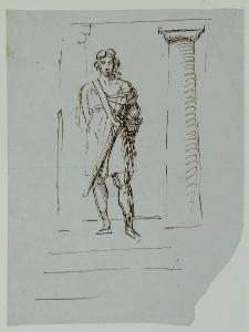 Figura di soldato antico in piedi tra due colonne. Figura di soldato antico in piedi tra due colonne
