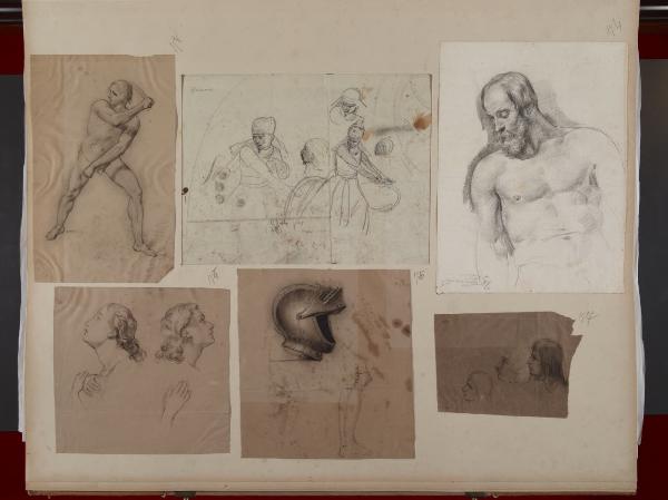 - NOTIZIE STORICO CRITICHE In questo foglio Cherubino Cornienti sembra studiare alcuni particolari di una figura raccolta in preghiera. Potrebbe trattarsi di un primo studio per l'Annunciazione eseguita nel 1856 per Giorgio Agudio e oggi nella Chiesa di S. Loenardo a Malgrate.