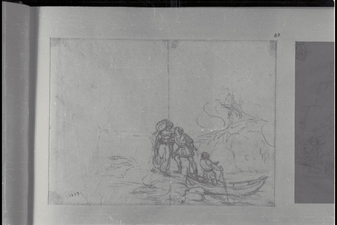 Scena storica con figure e barca
