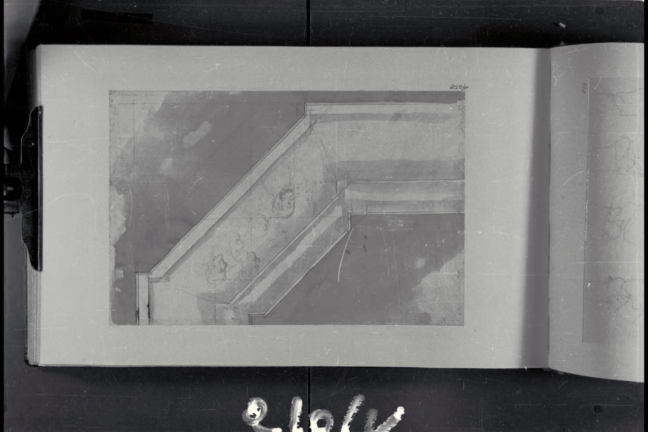 Particolare architettonico e abbozzi di teste