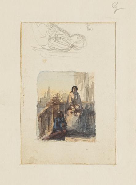 Donna seduta, uomo in ginocchio e schizzo di donna. Donna seduta, uomo in ginocchio e schizzo di donna