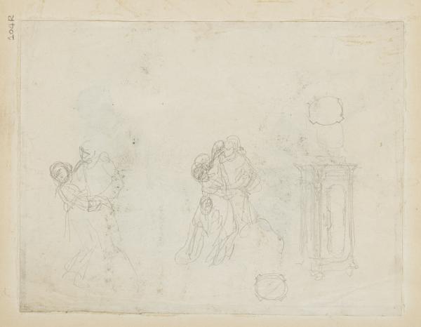 Schizzo di armadio e di figure. Schizzo di armadio e di figure