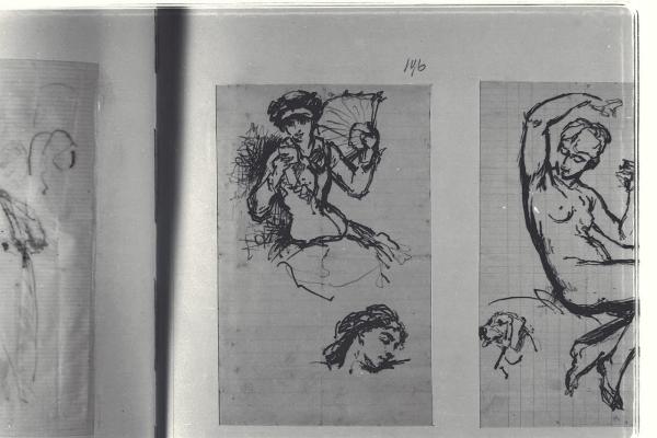 Donna seduta con ventaglio e studio di testa. Donna seduta con ventaglio e studio di testa
