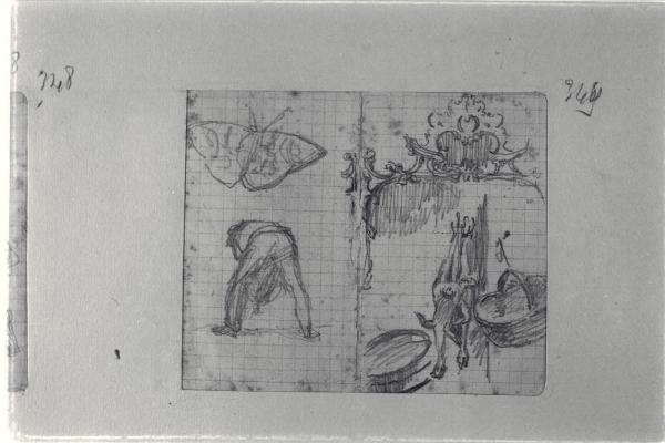 Studi di una figura, di una farfalla e di oggetti vari. Studi di una figura, di una farfalla e di oggetti vari