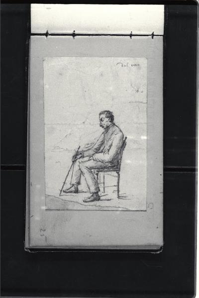 Studio dal vero di uomo seduto con bastone