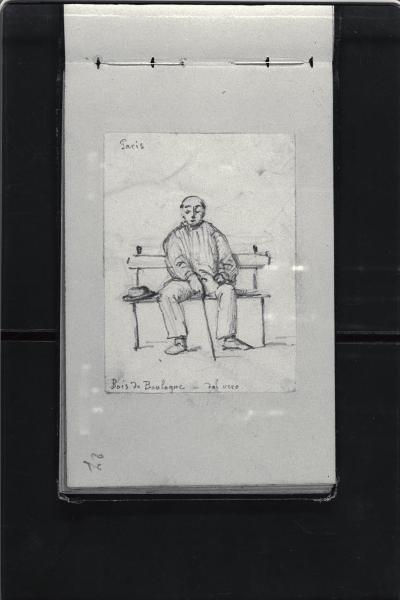 Studio dal vero di uomo seduto su una panchina al Bois de Boulogne a Paris