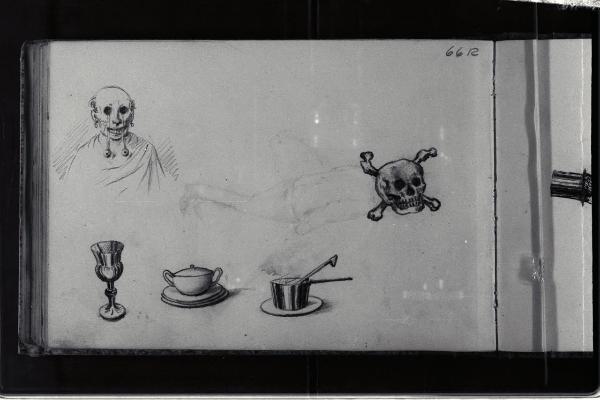 Studi di oggetti vari e di figura mostruosa