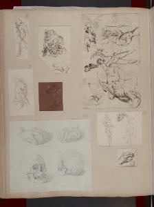 Nudi virili, testa e zoccolo di un cavallo, particolari anatomici e altri schizzi