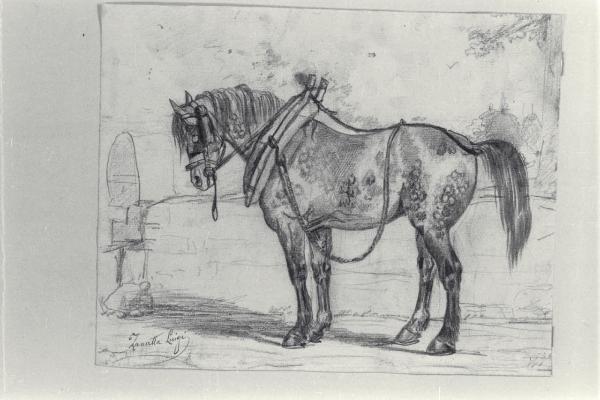 Cavallo da tiro visto di profilo