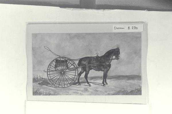 Paesaggio di pianura con cavallo attaccato ad un biroccio