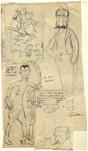 Studio caricaturale di cavallo e figura maschile. Studio caricaturale di cavallo e figura maschile
