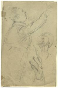 Studio per quadro Il Bollettino della Vittoria. Studio d'uomo che saluta, di mani e di testa con cappello vista di spalle