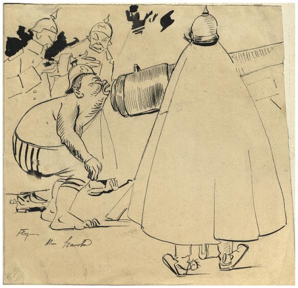 Scena satirica ("Von Kaniba all'epoca della guerra 1914", vedi nota ms. della vedova). Scena satirica ("Von Kaniba all'epoca della guerra 1914", vedi nota ms. della vedova)