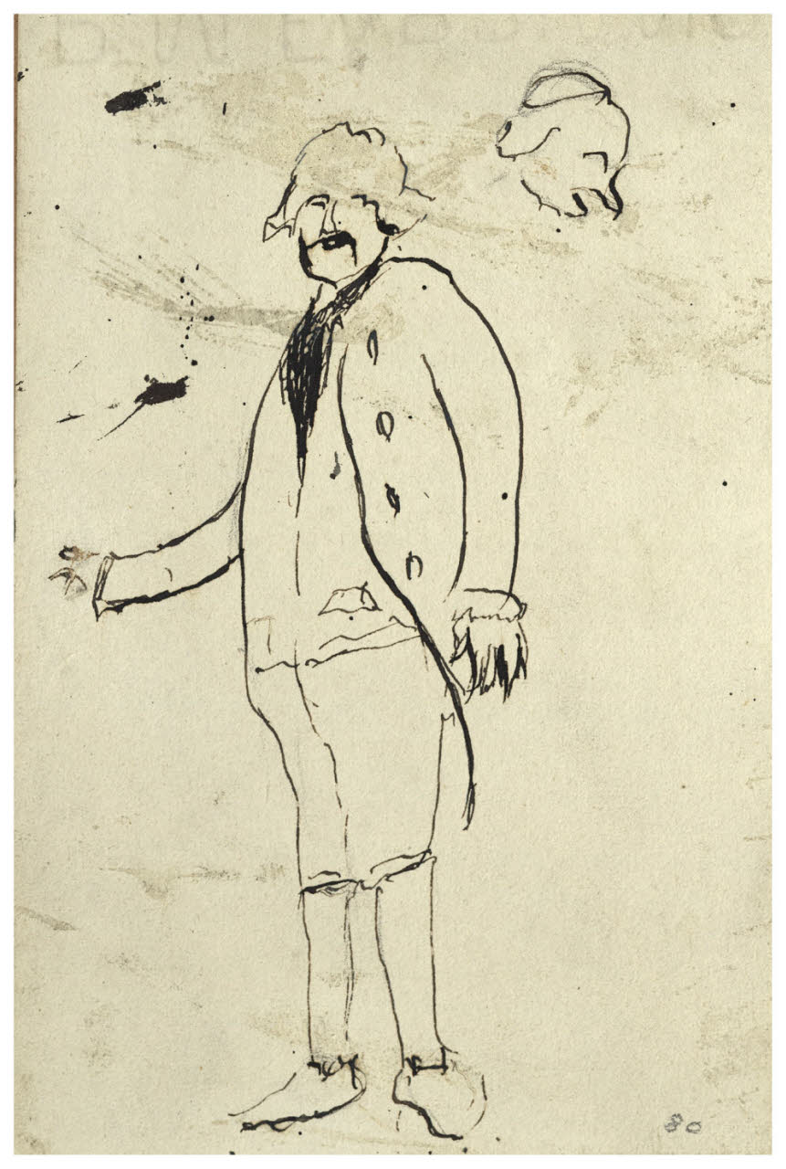 Figuretta maschile e schizzo di testa di profilo. Figuretta maschile e schizzo di testa di profilo