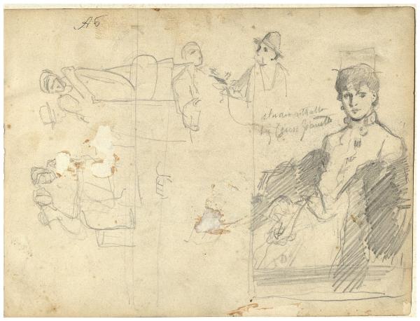 Schizzi di figure e studio di ritratto femminile. Schizzi di figure e studio di ritratto femminile