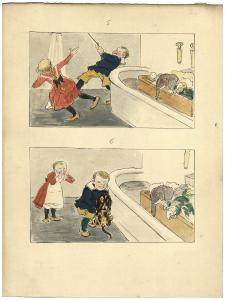 Due illustrazioni : bambini che giocano in bagno. Due illustrazioni : bambini che giocano in bagno