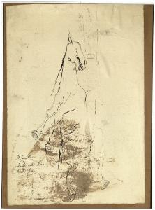 matita, inchiostro nero a penna su carta bianca, incollata su cartone marrone