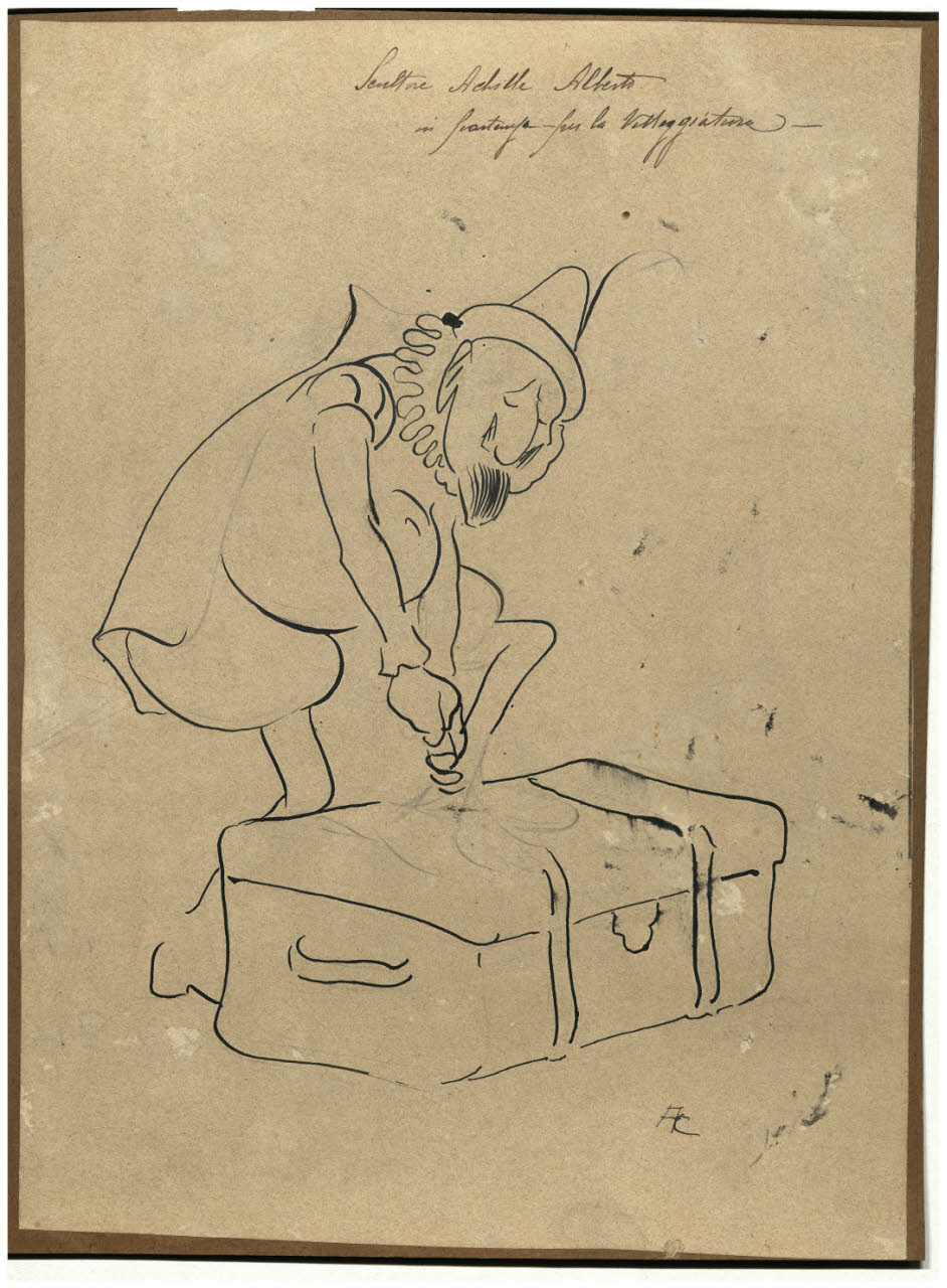 matita, inchiostro nero a penna su carta bianca, incollata su cartone marrone
