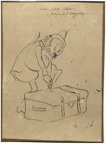 Figura caricaturale che chiude una valigia. Figura caricaturale che chiude una valigia
