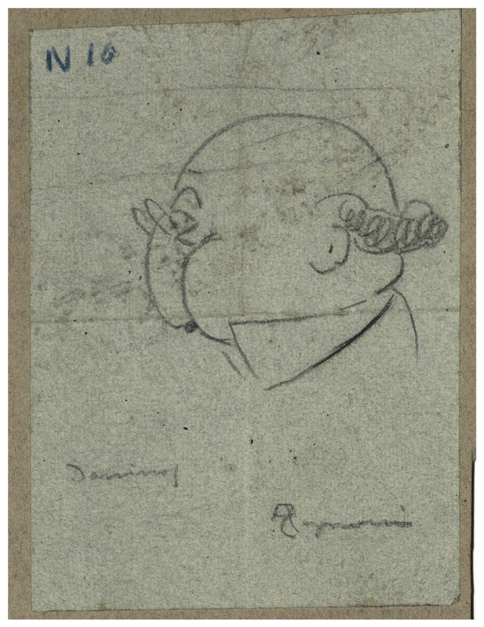 matita su carta azzurra, incollata su cartone grigio