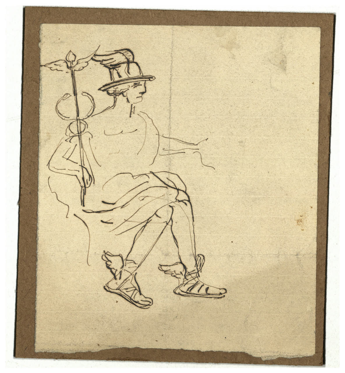 inchiostro nero a penna su carta bianca, incollata su cartone marrone