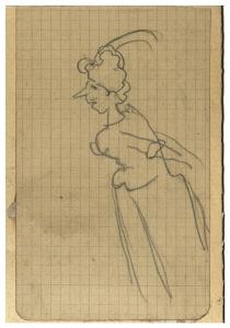 Caricatura di figuretta femminile con cappello a piume. Caricatura di figuretta femminile con cappello a piume