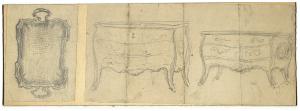matita su due pezzi di carta bianca, incollati su cartone avorio (vassoio 103x76) (commode 105x223) (commode 109x312)