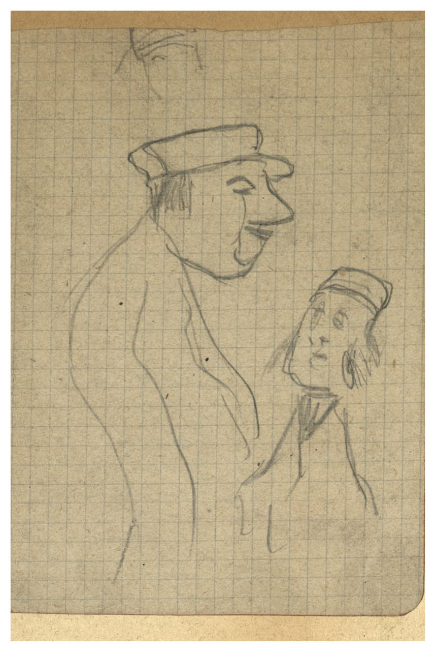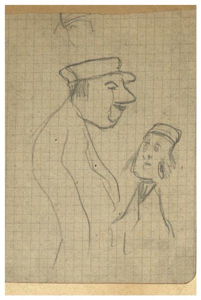 Due caricature di figurette maschili con cappelli. Due caricature di figurette maschili con cappelli