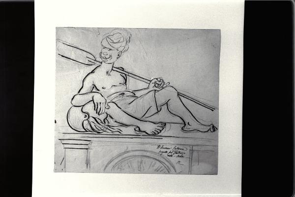Caricatura di divinità maschile seduta sopra un orologio. Caricatura di divinità maschile seduta sopra un orologio